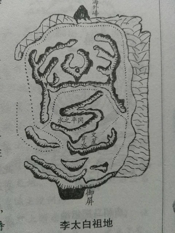 詩(shī)仙李太白祖墳,黃龍引子飲海形,海水為案。